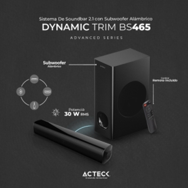 Acteck Barra de Sonido Dynamic BS465 Subwoofer Alambrico Bluetooth + HDMI + Óptico + 60W + Alimentación 110v Negro